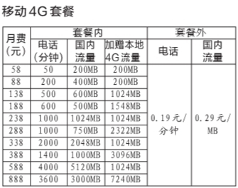 此前,中國移動和中國電信都公布了4G業務套餐,不過中國電信由于只公布了數據卡業務套餐,尚無綜合套餐推出。對比中國移動和中國聯通的4G套餐發現,聯通最低的入門檔位為76元,而移動的4G套餐門檻從商用之初的128元降至了58元。