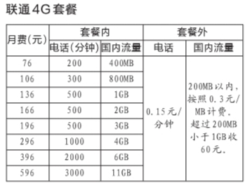 與3G套餐相比,聯通的“4G/3G一體化套餐”在相近檔位上大幅增加了所包含的數據流量。以聯通3G基本套餐A套餐156元檔為例,與之月費相近的“4G/3G一體化套餐”166元檔,套內語音由420分鐘提高至500分鐘,套內數據流量由500MB提高至2GB。
