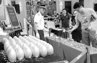 8月31日,一位購房者正在一家房產公司的售樓部“砸金蛋”,杭州樓市取消限購後,各大房產公司開始用各種方式招徠購房者。8月29日,杭州樓市全面取消限購,並將二套房首付降低至六成,受此影響杭州樓市的成交量開始放大,據杭州透明售房網統計,8月30日杭州主城區單日成交已經突破350套,本周(8月24日-8月30日)主城區商品房成交1303套,較上周(766套)環比上升70%,本周日均成交186套。