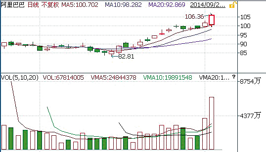 與9月份每股68美元的IPO(首次公開招股)價格相比,該股已經上漲了約47%,在過去一周內上漲15%,市值飆升800多億美元。但需要指出的是,阿里集團的銷售額仍遠遠不及沃爾瑪。其第三季度銷售額為27億美元,而沃爾瑪銷售額在上個季度就高達1200億美元。記者林曦報道
