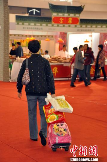 食博會首日,就有大量的食客涌進了現場,許多大爺大媽更是組團而來。家住寧波市望春的陳亞淑告訴記者,每年食博會她都會來逛逛,買些各地美食。前幾天,她就與一起跳廣場舞的老姐妹約好來逛食博會,所以一早就坐車趕了過來。考慮到買的東西一多拎著不方便,每個人還帶了一輛小推車。