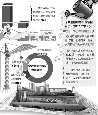國務院11月18日公布的新版政府核準投資目錄,在去年基礎上再次大幅減少中央層面核準的項目數量,被認為“放權力度最大的一次”,企業將獲得更多的投資自主權,有利于激發市場主體創造活力,同時,政府將堅持放管並重,加強後續監管——