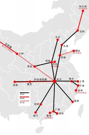 高鐵越開越遠、方向越來越多。向東北高鐵再延伸,新開至哈爾濱的高鐵。經由京哈(北京至哈爾濱)、津秦(天津至秦皇島)、京滬(北京至上海)、合蚌(合肥至蚌埠)、合武(合肥至武漢)線運行。屆時,從武漢乘坐始發列車至哈爾濱的時空距離將從目前的28小時左右壓縮到14小時左右。由于該趟高鐵途經長春,調圖後,從武漢乘坐高鐵、動車可快速抵達22個省會城市。
