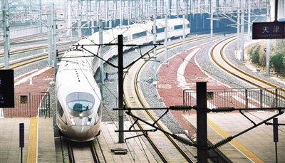 12月9日,由寧波開往沈陽北的G1221次高鐵列車駛入天津站。楊寶森攝 (新華社發)