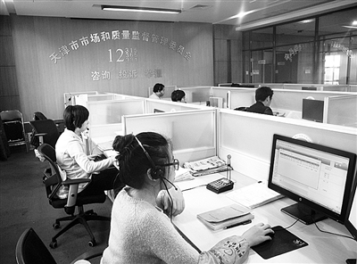 天津市市場監管委投訴舉報中心,3條熱線的工作人員在受理消費者舉報投訴。