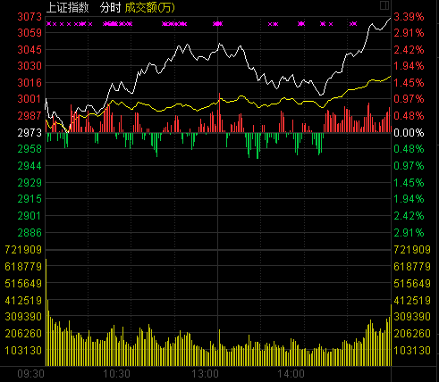 截至收盤,滬指報3072.54點,漲幅3.36%,成交3790億元;深成指報10493.8點,跌幅1.96%,成交2009億元;創業板指報1529.47點,漲幅0.64%,成交301.8億元。