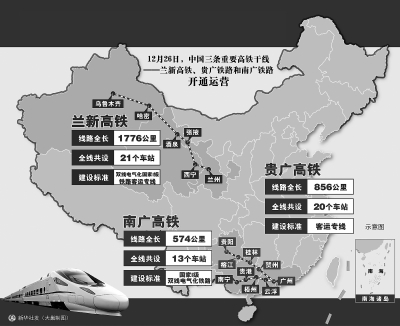 本報綜合報道 26日,蘭新、貴廣和南廣三條高鐵同時開通運營,豐富了我國的高速鐵路網,貫通了“一帶一路”,為西部經濟發展注入強大動力。截至目前,內地高鐵列車開行范圍已擴展至28個省區市。