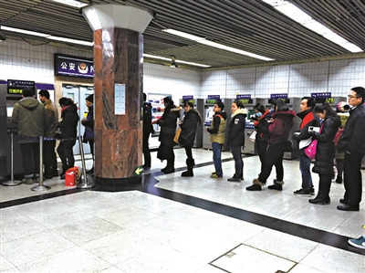 昨天是地鐵告別2元的單一票價進入分段計價之後的首個工作日,北青報記者走訪了幾個平時客流量較大的地鐵站發現,平常時間段內,客流量並無明顯變化,人工購票窗口也並未見排長龍現象。晚高峰期間,排隊安檢進站、購票充值的人則很可觀。
