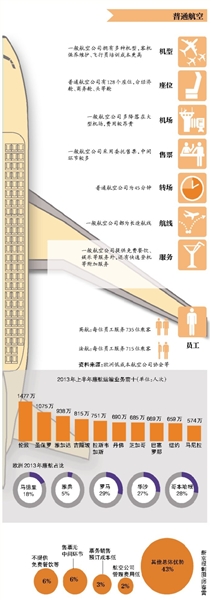 這樣的低成本是如何實現的?最為人熟知的手段就是簡化不必要的服務。中國民航大學航空運輸經濟研究所所長李曉津對新京報記者表示,廉價航空主要是在服務上進行簡化,針對一些乘客更喜歡低票價而不是高端服務,航空公司意識到這一點後就會採取廉價模式。例如,不提供餐食,飛機延誤後酒店和住宿安排一般等。