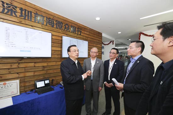 李克強總理4日在深圳考察首家互聯網銀行前海微眾銀行。