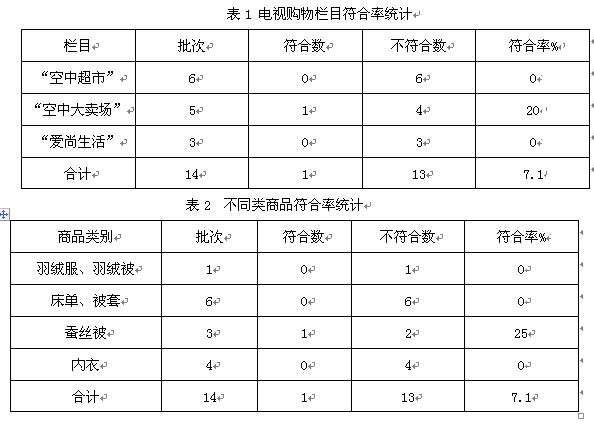 從本次比較試驗的結果來看,電視購物欄目的商品質量狀態不容樂觀。較為嚴重的有“空中超市”欄目和“愛尚生活”欄目,不符合率達到了100%。