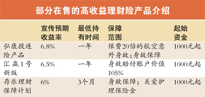 記者昨日在上述保險網銷平臺發現,經歷了一段時間的“靜默期”,如今的理財型保險收益率紛紛水漲船高,除了上述預期收益率為6.8%的投連險,還有珠江人壽推出的年化預期收益率為6.5%的萬能險。不過值得注意的是,除了這幾家此前風格較為激進的保險公司,其他保險公司推出的高收益產品依然難以尋覓。