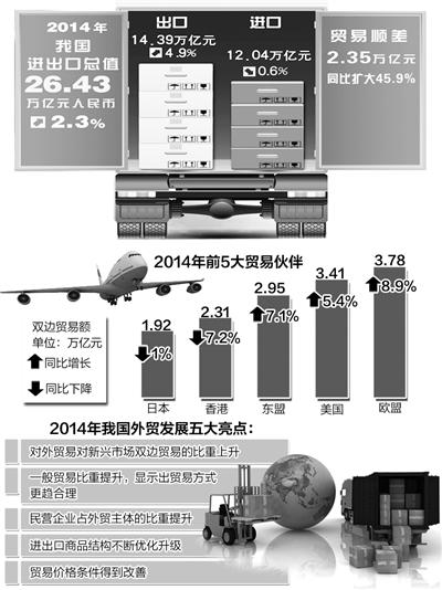 “從單純的數據規模來看,2014年我國貿易順差又制造了一個新的高點,但簡單的高順差並不是我國對外貿易所追求的目標,我們一直在關注對外貿易的平衡、協調和可持續發展。”鄭躍聲說。