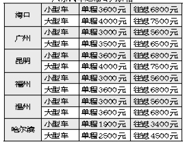 北京青年報記者梳理6條線路後發現,去往海口和昆明線路的汽車運輸費用最高,小型車往返要6800元,大型車往返要7500元。去往哈爾濱的費用最少,小型車往返要3400元,大型車往返要4500元。