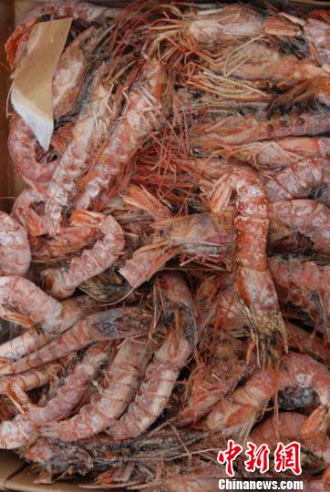 集中銷毀腐敗變質進口凍紅蝦 山東檢驗檢疫局供圖 攝