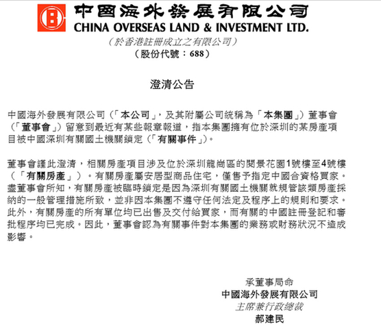 此外,公告稱,有關房產的所有單位均已出售及交付給買家,而有關的中國注冊登記和審批程序均已完成。因此,董事會認為有關事件對本集團的業務或財務狀況不造成影響。