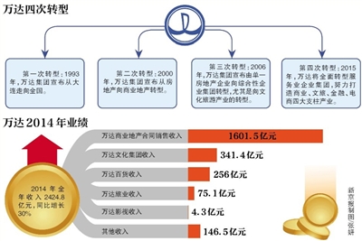 從內容上看,萬達將去房地產化,轉型為服務業為主的企業。萬達將加快發展文化旅遊、金融產業、電子商務3個產業,到2020年形成商業、文旅、金融、電商基本相當的四大板塊,徹底實現轉型升級。