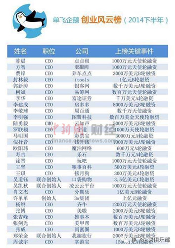 1月17日下午,由單飛企鵝俱樂部主辦的北京單飛企鵝新年聚會上發布單飛企鵝創業風雲榜