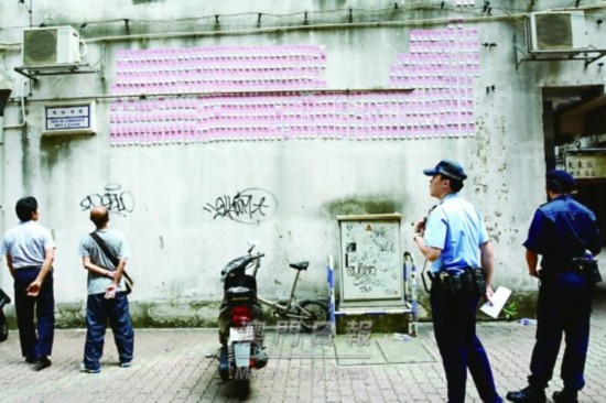 昨晨上班時段,不少“打工仔”行經馬統領圍時,發現上址一幢大廈外牆上,貼上大量疑似人民幣100元,途人都嘖嘖稱奇,直至早上9時27分,有居民報警。警方接報到場,發現牆上約有420張疑似百元人民幣,有數張則貼在下方電箱上,警員經細心查看,證實為單面彩色影印百元人民幣圖樣的卡片,底面為白色。