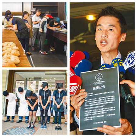 胖達人總經理徐志鴻27日上午現身臺北忠孝店,率領員工鞠躬道歉。徐志鴻表示,原本有79種面包,有香精問題的20多款全部下架,包括人氣商品“黑眼豆豆”及加州藍莓奶酪、瑞士巧克力、德式海螺等面包。估計27日上架約40種,出爐面包總數量是過去的一半,之前架上的“天然酵母”字眼也全部涂黑。