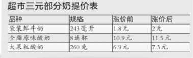“的確是成本壓力太大。”三元食品有關負責人何小唐告訴記者,在超市渠道,如243毫升的袋裝鮮牛奶由原來1.8元漲到2元。