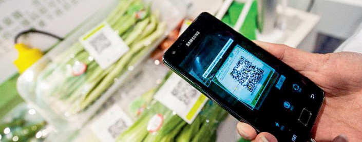 通過手機掃描包裝上的二維碼,可追溯蔬菜的生產、運輸等情況 新華社