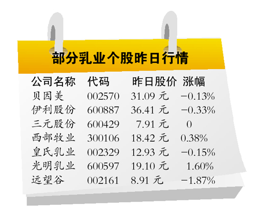 而西部牧業昨日公告稱,其全資子公司新疆生產建設兵團畜牧工程技術研究中心擬以參股方式分別投資建設7個奶牛養殖有限公司。預計建成後,西部牧業奶牛存欄量將在1.3萬頭基礎上增加6600頭,增長幅度逾50%。昨日西部牧業報收18.42元,股價上漲0.38%。