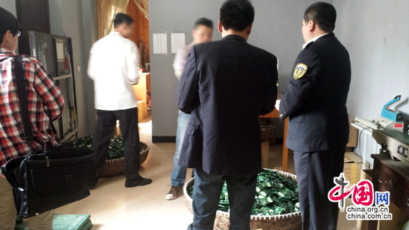 杭州市質量技術監督局西湖分局查獲大量假冒的浙茶集團獅峰牌龍井。