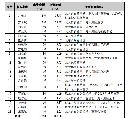 而銀龍投資的股東和高管,與龍大集團又高度重合。如下圖所示。
