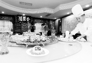 全聚德奧運村店推出了足球題材的世界杯菜肴。晨報記者 姜浩波╱攝