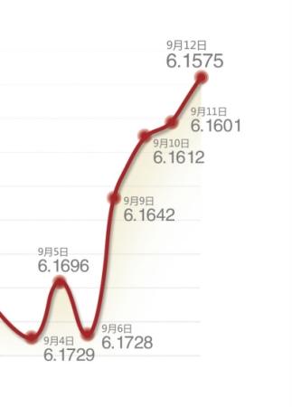 從即期市場來看,昨日即期市場上人民幣對美元匯率早盤保持平穩。9月以來,人民幣對美元即期匯率走勢穩健,並未表現出較明顯的漲勢,但相對于亞洲一些新興市場貨幣表現堅挺。根據中國外匯交易中心數據計算,本周的4個交易日,人民幣對美元匯率中間價累計升值153個基點。昨天人民幣對美元匯率中間價達6.1575,突破了今年6月17日創出的6.1598的前期新高。
