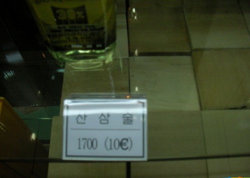 要了解朝鮮人民的收入,首先要了解朝幣的比價。看看這個專為外國人設的商店里賣的酒,就知道朝幣與人民幣的比值了。我們知道100人民幣=10歐元,圖片中這瓶標價10歐元的酒應該折合100元人民幣,而那個1700,就是朝幣的價錢。即:100元人民幣=1700朝幣。