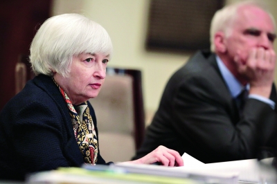 圖為美聯儲主席耶倫(左)18日在華盛頓出席一次會議。 新華社/法新