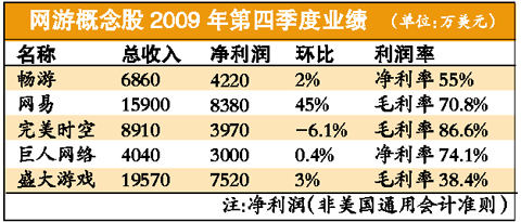 網絡遊戲曾以七成以上的利潤率成為互聯網領域的一個神話,然而,在市場格局逐漸清晰的今天,這個神話的光環也逐漸褪去。根據在美國上市的各大網遊概念股第四季度業績顯示,其成本都在不同程度地增加,網遊概念股正在告別最暴利行業的稱號。