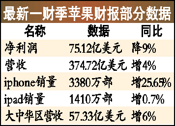 數據顯示,2013年第四財季,蘋果公司的凈利潤為75.12億美元,每股攤薄收益8.26美元,2012財年第四財季,蘋果公司的凈利潤為82.23億美元,每股攤薄收益8.67美元。同時,蘋果公司第四財季運營利潤為103.30億美元,低于去年同期的109.44億美元,該財季營收為374.72億美元,比去年同期的359.66億美元增長4%,其中國際銷售額所佔比例為60%,本報記者統計發現,蘋果該財季凈利潤同比下滑了9%,出現了連續三個財季同比下滑。