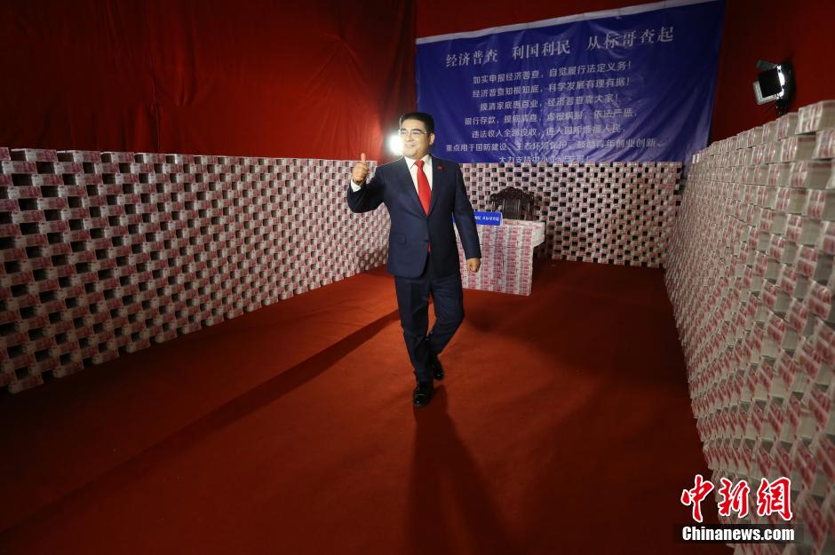 陳光標16噸百元大鈔搭建“演播室”助推經濟大普查