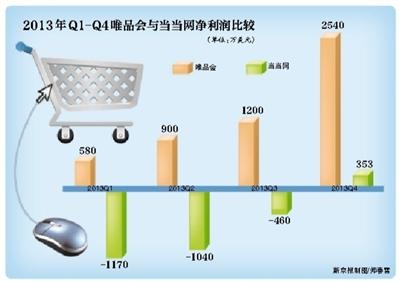 昨日公布的數據顯示,2013年第四季度,唯品會的總凈營收為6.51億美元,同比增長117.3%;凈利潤達2540萬美元,同比增長300%。