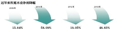 今年2月11日,科冕木業公布了去年年報。年報顯示,2013年,科冕木業實現凈利潤1108萬元,同比下滑48.83%。上市以來的四年間,其業績下滑,已成常態。