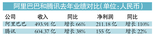 而其最大競爭對手騰訊去年凈利潤為155億人民幣,同比增長22%。
