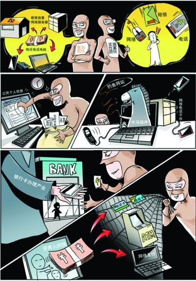 每一起電信網絡詐騙案中,市民面對的並不是一個傳統意義上的騙子,而是一個分工精細、高度產業化的詐騙產業鏈,上下遊附著至少五個專業團夥。昨日,江蘇警方通過連環漫畫,揭示電信網絡詐騙的伎倆。