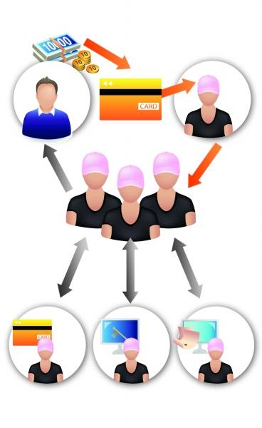 【洗錢團夥】當你的錢到了指定賬戶後,洗錢團夥通過網銀將賬戶上的錢快速轉移,由專人在各地ATM機上取出,或通過購買遊戲卡、電話卡、網絡支付等方式將這些錢洗白,匯入電信網絡詐騙集團的賬戶中。通訊員 蘇宮新 揚子晚報記者 于英傑