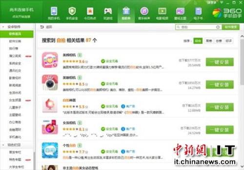 中新網10月15日電 上有《美顏相機》下有《自拍神器》,360手機助手中的自拍類應用總體下載次數加起來恐怕要直接上億。單《美顏相機》一款App下載量就有5776萬次之多,看樣子360手機助手的5億用戶中,愛自拍的人數果斷不在少數。而近期一個報告卻在微博突然上了熱門排行榜,引起網友恐慌,其內容直接指出,愛自拍會影響智商!