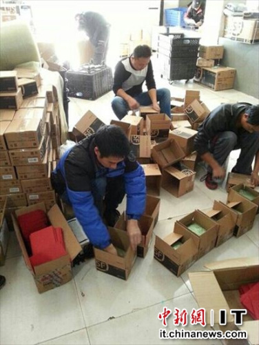 (圖:快遞小哥在忙碌地包裝給記者的禮物)