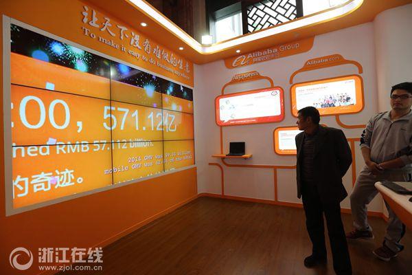 在阿里巴巴桔紅色展區,浙江在線記者看到,螞蟻金融服務被重點展現。資料顯示,螞蟻金服成立于2014年10月,前身是小微金融服務集團。其主要業務包括支付寶錢包、螞蟻小貸、網商銀行(籌)等,將致力于為小企業和消費者提供小額金融服務。現場,支付寶跨境支付、支付寶海淘業務成為螞蟻金服新推出的業務。正在布展的工作人員告訴記者,阿里希望用安全、便捷的支付係統讓“天下沒有難做的生意”願景延伸到全球。