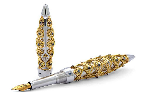 百貨公司的網站稱,這支鋼筆的設計靈感來自于伊斯蘭藝術。設計師將金子雕琢成了蔓藤花紋的形狀,“適合送給任何人”。
