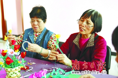 長者日間護理服務中心,老人家通過折紙等方式改善協調能力,培養生活樂趣。