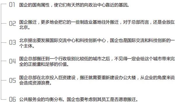 其二,從慣性依賴的角度看,北京當下的經濟主要是國企總部經濟。國企對政策依賴性極其高,在現行體制下,難以想象中字頭的國企們能遠離國務院各部委生存。