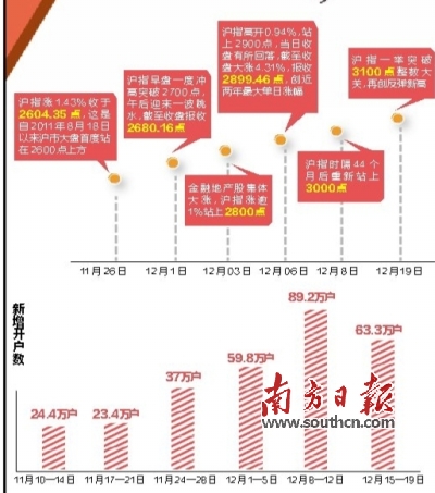 在即將過去的12月內,滬深兩市以一波又一波的“快牛”行情,屢創紀錄:一方面成交量接連創出歷史新高,以萬億天量改寫世界股市交易紀錄。同時,個股輪動也有不俗表現,尤其是以券商為代表的金融股和受益國家“一帶一路”戰略推進的基建、鐵路股表現極其優秀。券商、高鐵兩大概念更可謂稱得上今年A股市場的“無冕之王”,截至上周末,板塊年度整體漲幅達到了143.38%、112.06%。