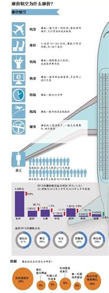 廉價航空精打細算的經營模式使廉價航空在世界航空市場佔得不少份額。據報道,目前,全球廉價航空公司共有176家,佔全球運輸總量的26%,其中亞洲有43家。在3年時間內,以亞航和維珍藍航為代表的亞太地區廉價航空公司佔據了亞太民航市場超過9%的市場份額。