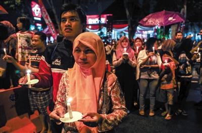 2014年12月31日,印尼泗水,民眾點燭為亞航失事客機遇難乘客祈福。亞航空難,令廉價航空安全受到質疑。